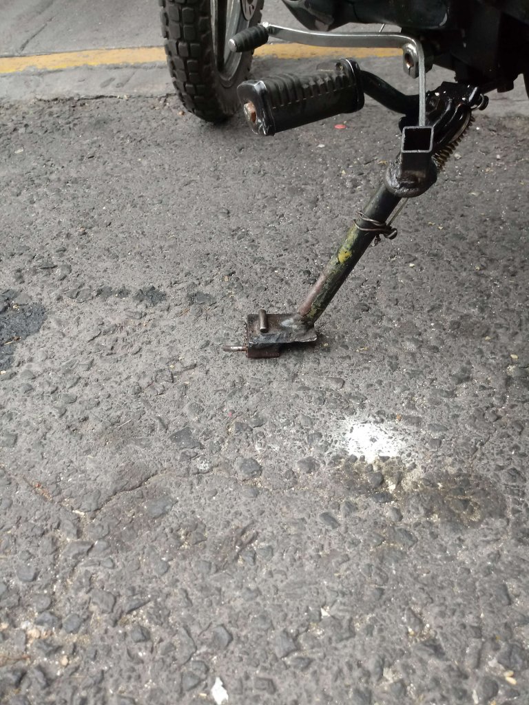Motivo se cayó golpeando palanca velocidad fue que se rompío un seguro internó Sé le soldó un aumento debajo un candado en deshuso y forzó a ajustar la union con el tornillo de banco teniendo colocado el eje todo esto sucede porque son Motocicletas armadas adaptadas sus partes producidas en maquila y de distintos proveedores de una cadena pero está oportunidad garantiza refacciones económicas de marca de importación por una importadora como Remo o un Club como Moster de usó en el Marketplace Tianguis Ganga Pulgas y hasta piratas ,hechizas modificadas y adaptadas como una Tercera Rueda Llamada Sidecar